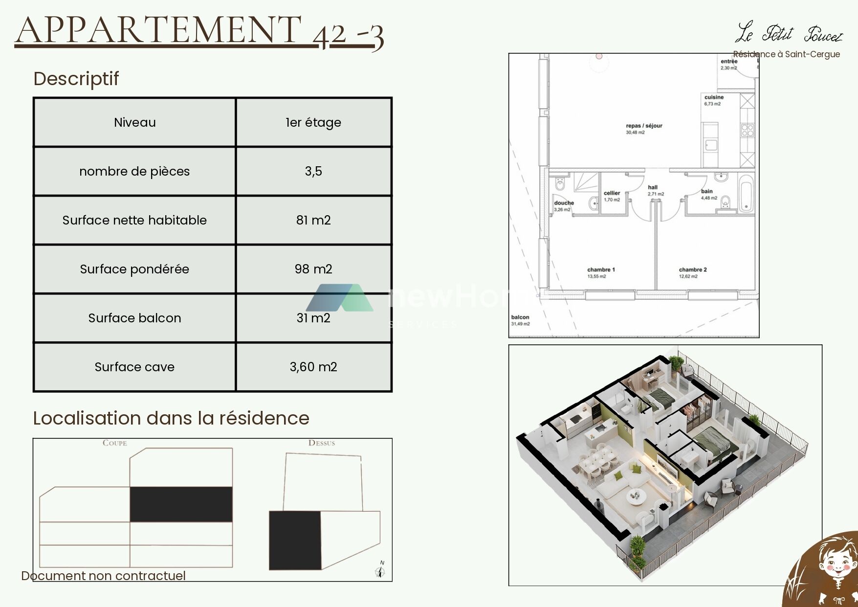 Afin de répondre aux besoins des habitants de la région de Saint-Cergue, ce charmant projet immobilier situé au cœur du village propose 8 appartements neufs à la vente, allant du 2.5 pièces au 4.5 pièces. Les prix s’échelonnent de CHF 535'000.– à CHF 1'395'000.–.