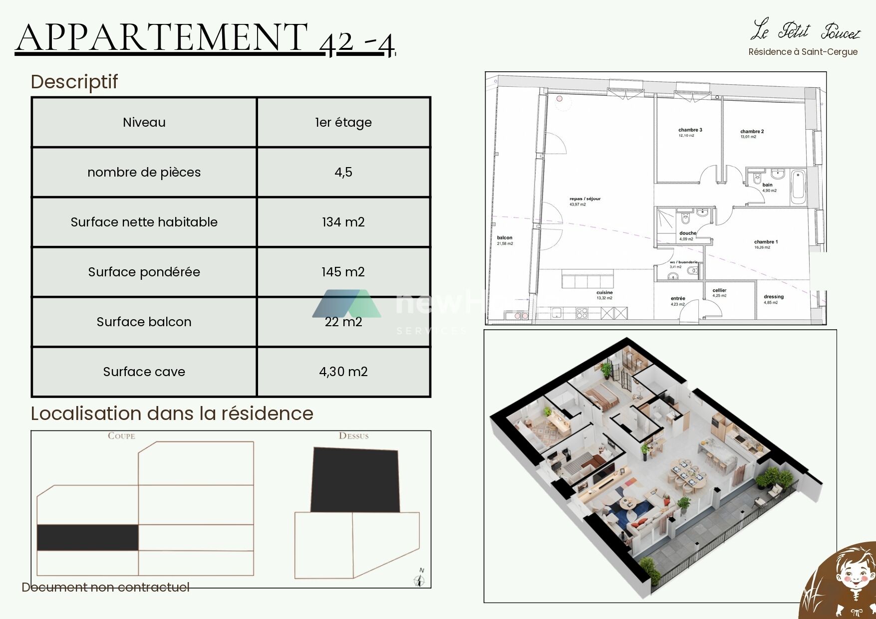 Afin de répondre aux besoins des habitants de la région de Saint-Cergue, ce charmant projet immobilier situé au cœur du village propose 8 appartements neufs à la vente, allant du 2.5 pièces au 4.5 pièces. Les prix s’échelonnent de CHF 535'000.– à CHF 1'395'000.–.