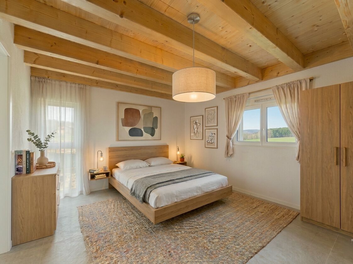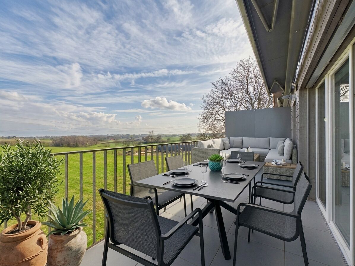 L’espace de vie principal, d’une surface de près de 50 m², offre une configuration ouverte sur l’extérieur avec une belle hauteur sous plafond, offrant une continuité entre intérieur et paysage. Un balcon de 12.5 m² prolonge naturellement les espaces de vie.