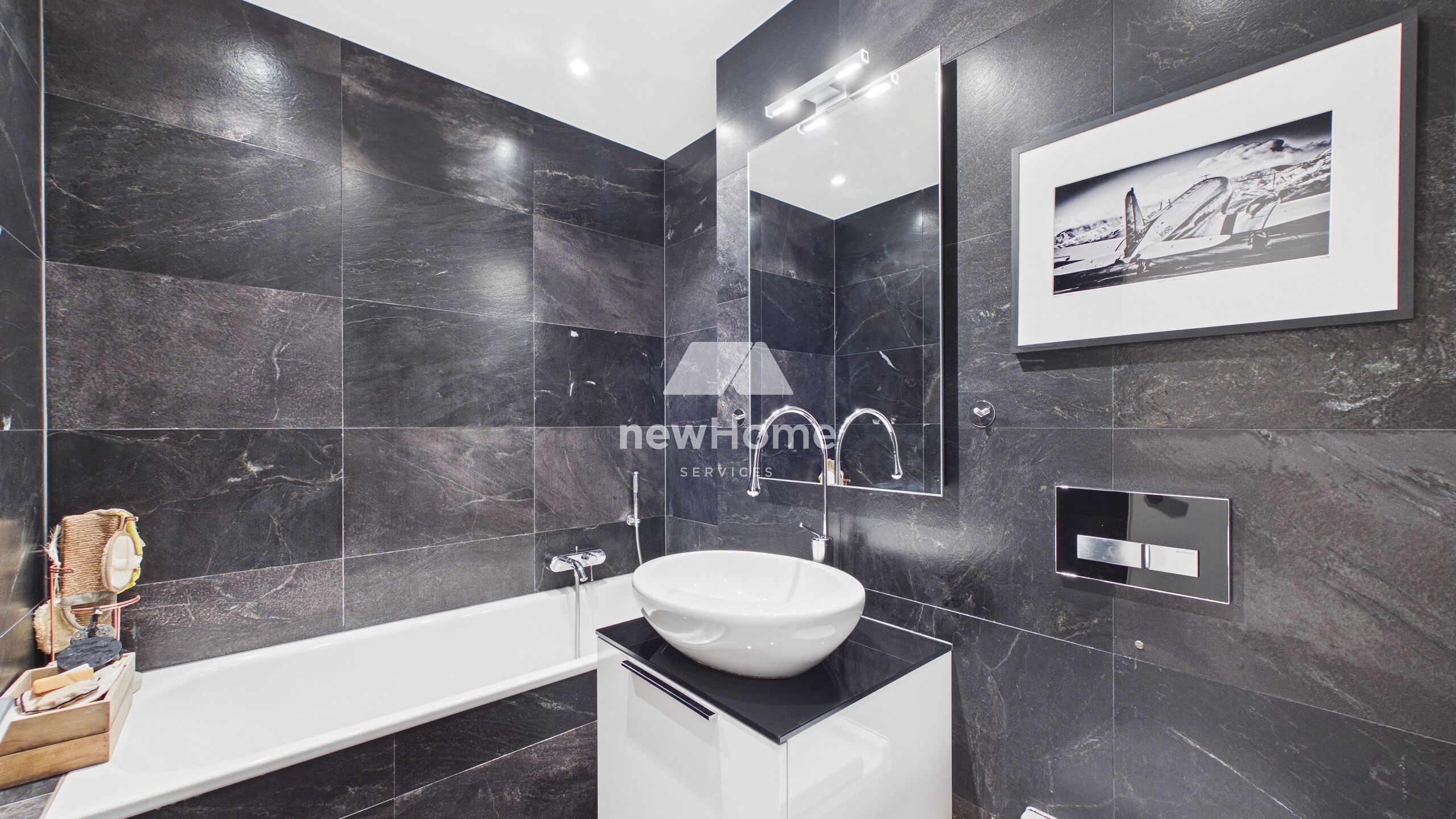 Cet attique avec balcon séduit par la qualité de ses finissions haut de gamme, la sobriété de ses lignes et le choix de matériaux nobles, créant une atmosphère élégante et intemporelle.