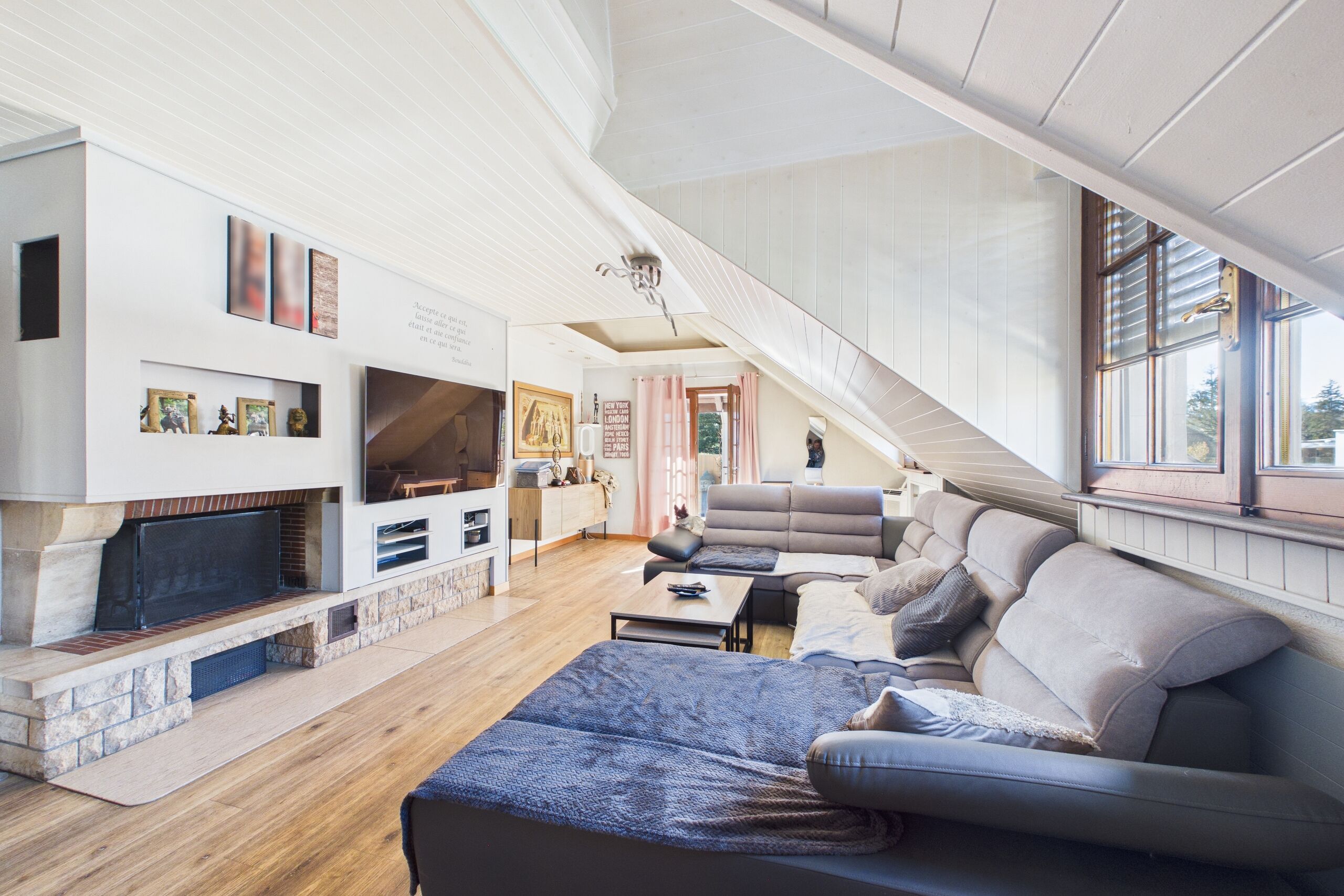 Appartement de 3 pièces, avec cuisine moderne, salon avec cheminée et accès à une majestueuse terrasse de 26 m2, une salle de bain, un WC visiteurs.
