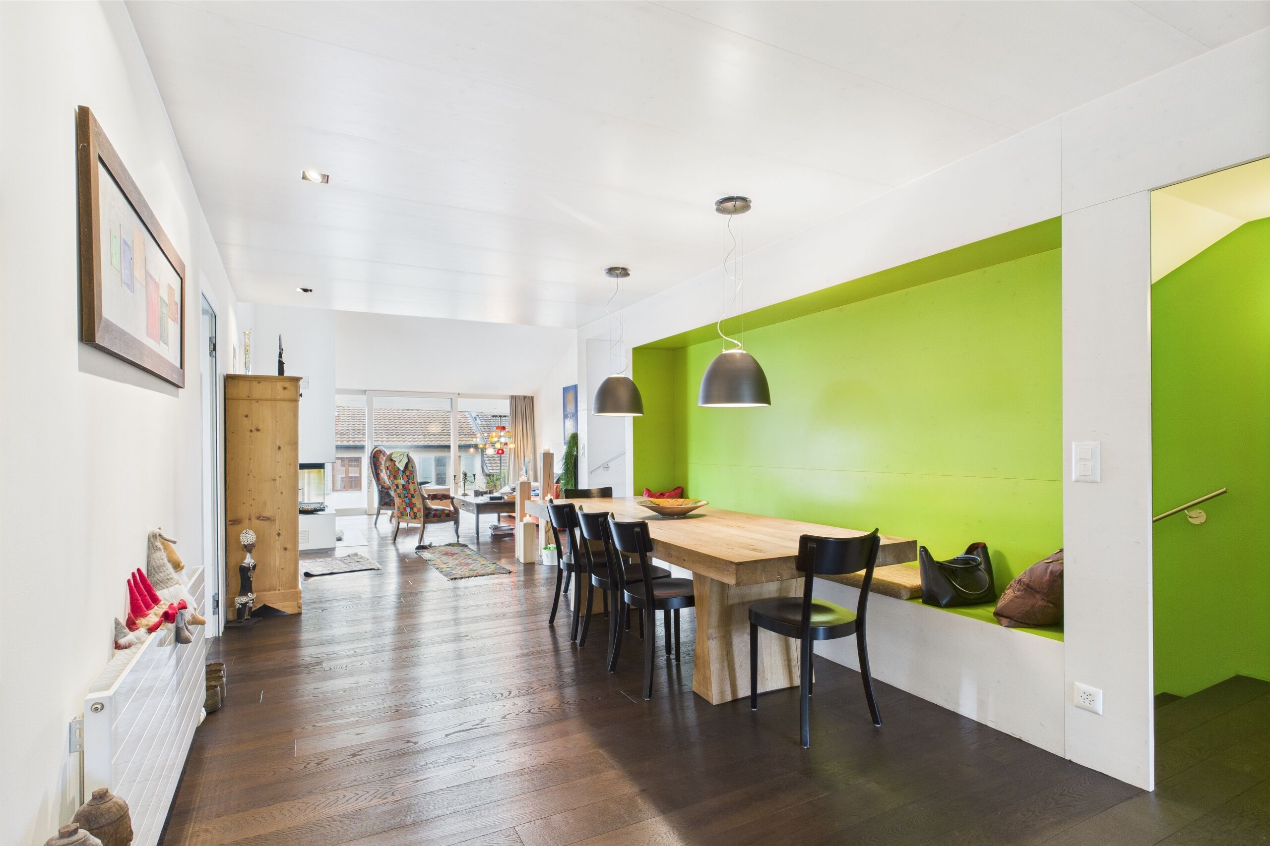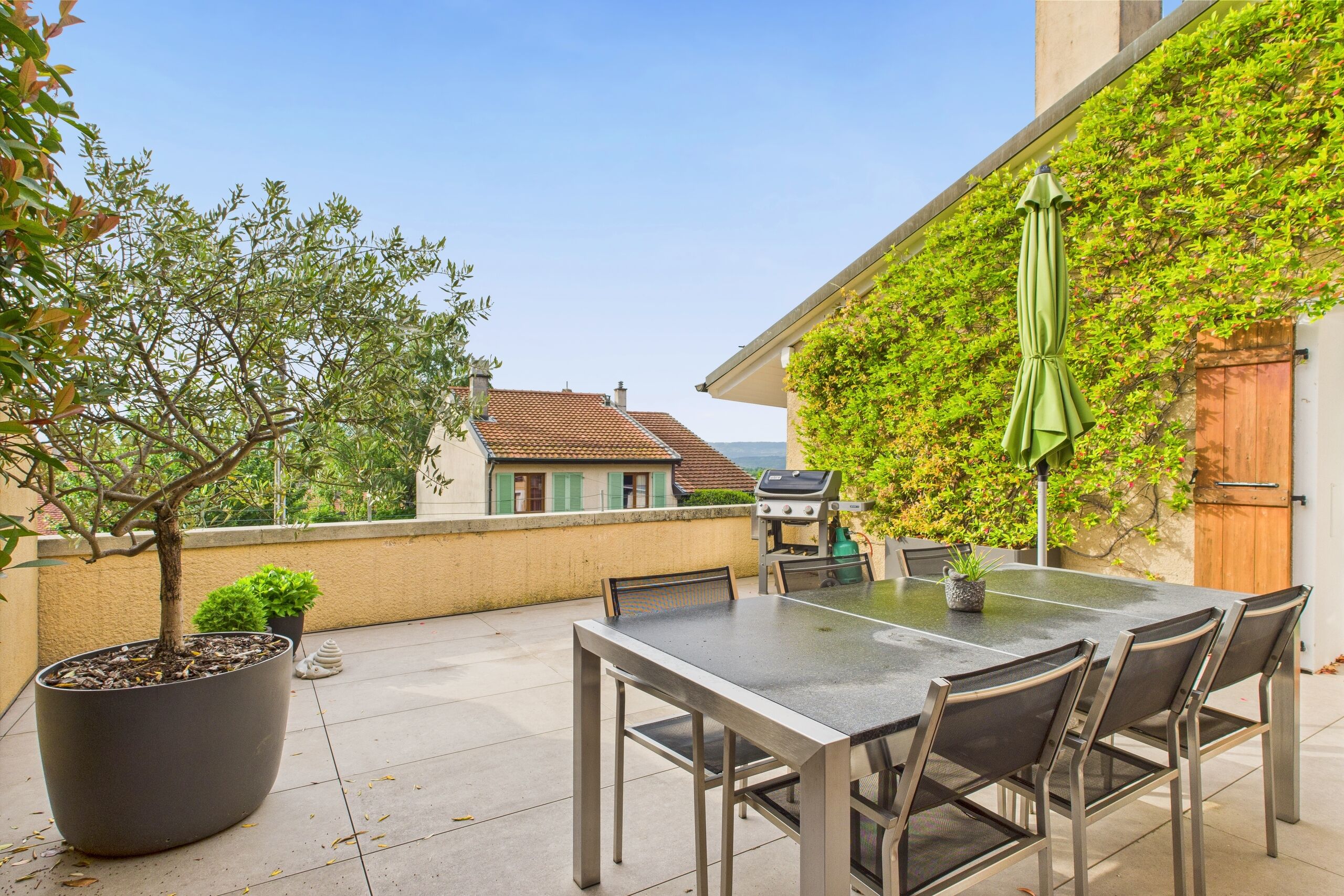 Le lot vendu est composé d'un studio (avec entrée séparée, actuellement non loué) et d'un appartement de 5.5p. distribué sur 3 niveaux. Ce dernier bénéficie d'une grande terrasse (sud-est) et d'un garage.